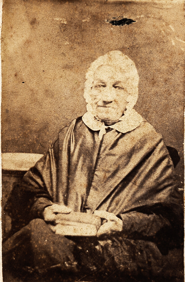 Almira Tuller (b. 1808, d. 1882) is pictured here. She was the wife of Jonathan D. Tuller (b. 1807, d. ?). They had six children; Sarah Tuller (b. 1828), Owen Tuller (b. 1832), Saloam Tuller (b. 1834), Clinton Tuller (b. 1836), Mary Tuller (b. 1840), and Eliza Tuller (b. 1847). In the 1880 census Jonathan's occupation was listed as retired butcher.