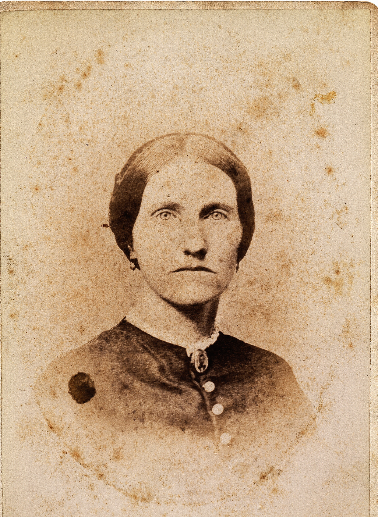 Laurinda Case Brelsford (b. 1830, d. 1883) is pictured wearing a mourning brooch of President Abraham Lincoln. Her parents were Scioto Company proprietor Israel Putnam Case (b. 1781, d. 1832) and Laurinda Morrison Case (b. 1790, d. 1879). She married Thomas Jefferson Brelsford (b. 1828, d. 1895) in 1851. Following their marriage they moved to Illinois, returning to Worthington at the start of the Civil War. Thomas served in Company B of the 46th Ohio Volunteer Infantry as a 1st Sergeant. They had four children, Charles Wilbur Brelsford, Ida Eliza Breslford, Minnie Lorinda Brelsford, and Thomas Sherman Brelsford.