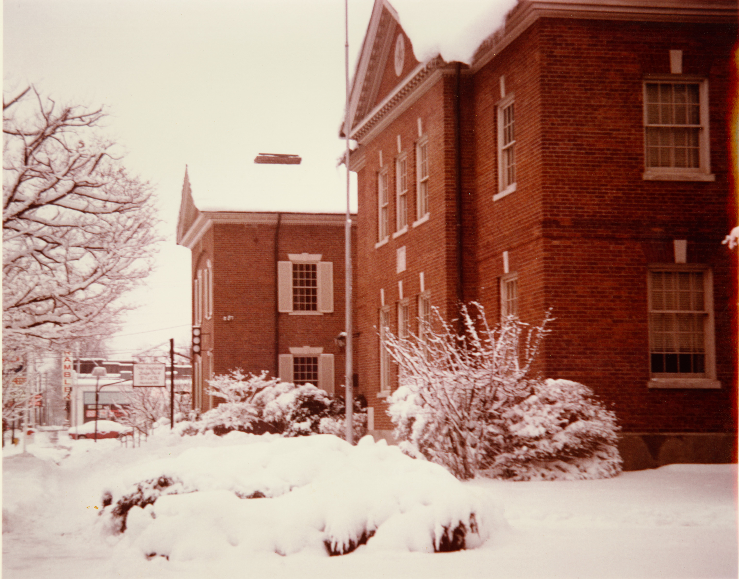 View looking north on High Street in front of the Masonic Temple in winter. The New England Masonic Lodge was constructed in 1820 and is the oldest Masonic Temple west of the Allegheny Mountains in constant use. Several of Worthington's founders were Masons.