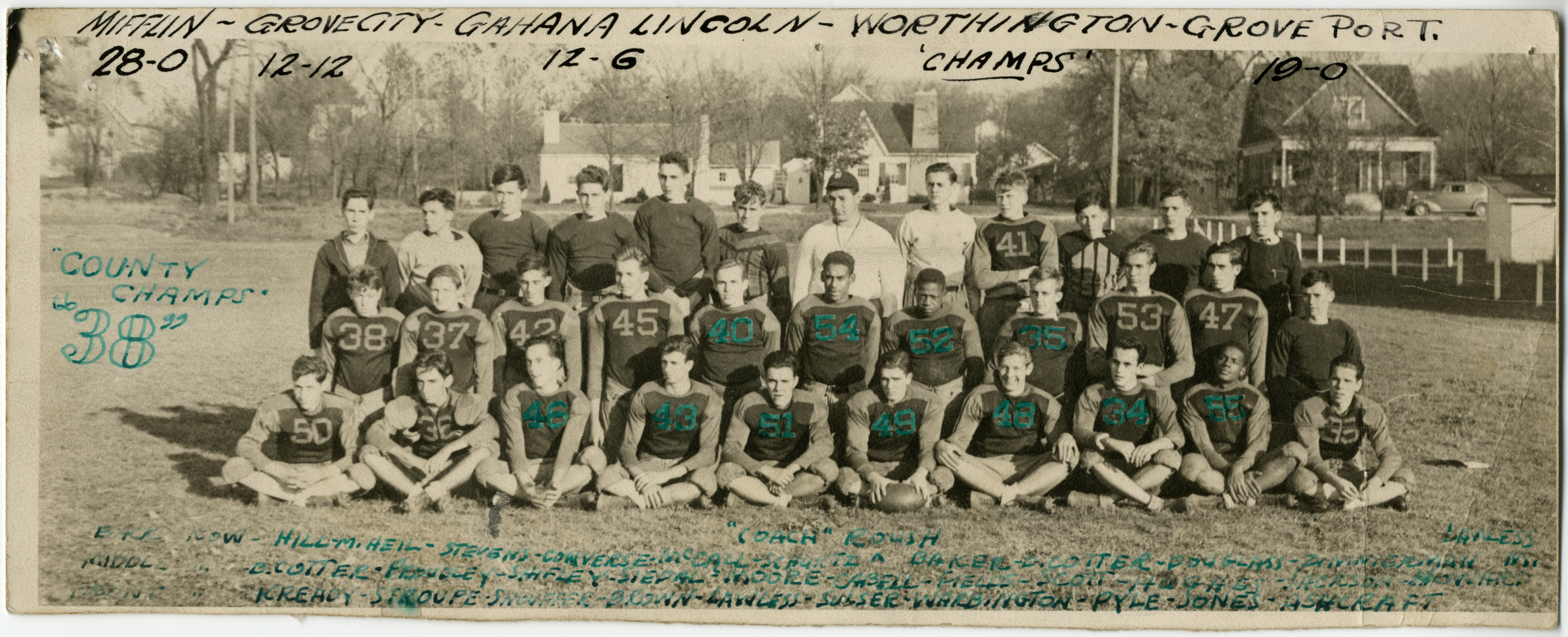 This photo shows the 1938 Worthington High School football team. The team was named “County Champs” for the year.