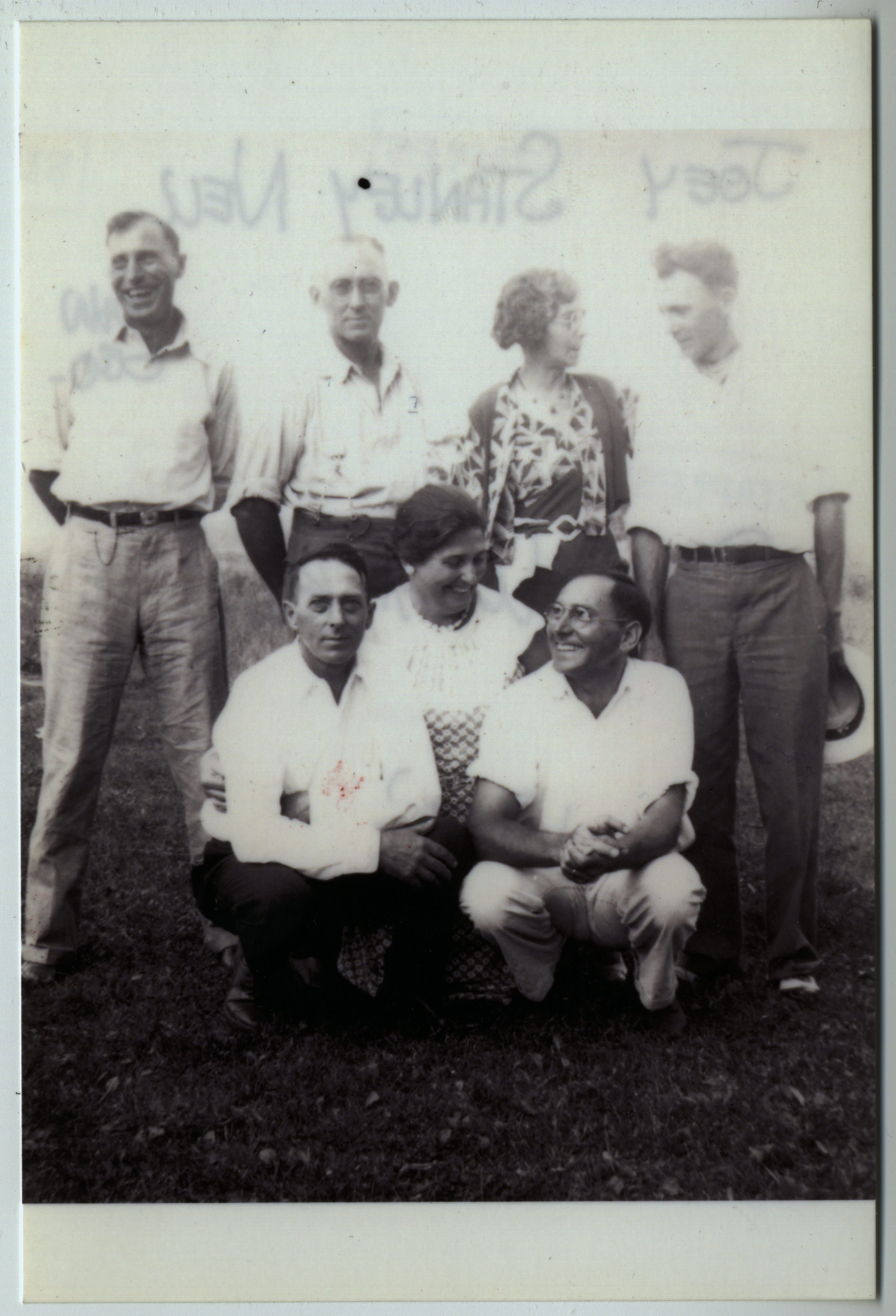 This photograph is a family portrait of the Snouffer Family taken in the 1930s. Back row: Joseph (Joey) F. Snouffer (b. 1889, d. 1967), Stanley W. Snouffer (b. 1877, d. 1970), Nell Snouffer Hall (b. 1886, d. 1980), and John G. Snouffer (b. 1895, d. 1973); Front row: Oliver (Deak) C. Snouffer (b. 1879, d. 1960), Leila M. Snouffer Simmons (b. 1893, d. 1968), and William (Bill) M. Snouffer (b. 1897, d. 1990).