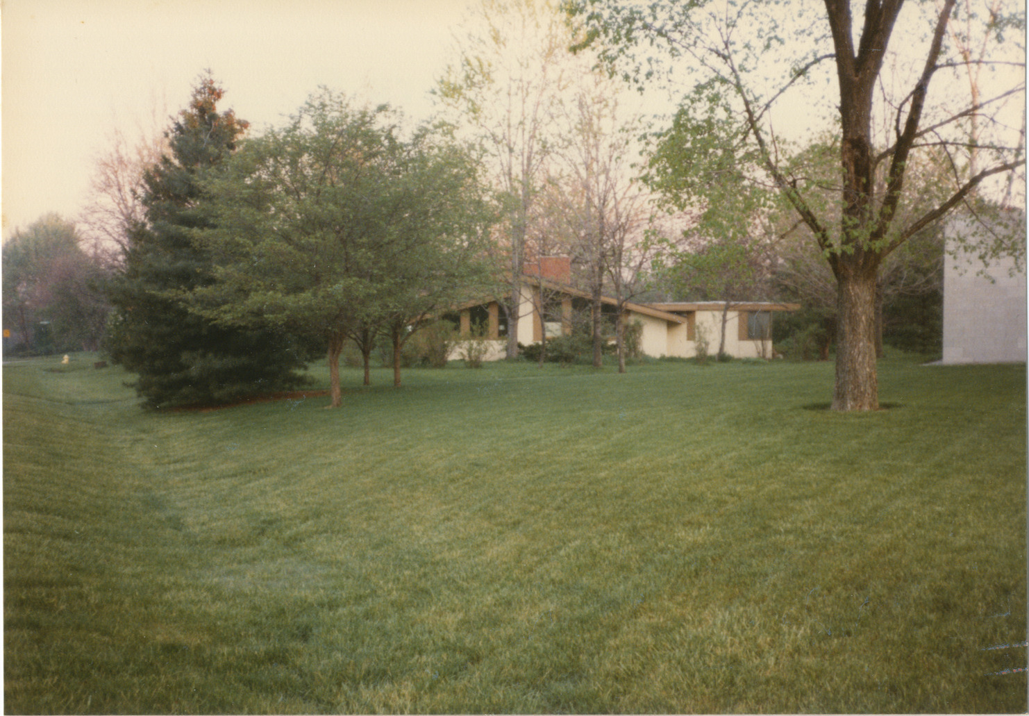 This color photograph shows the home at 312 E. South Street as it appeared circa 1986. Handwritten on the back is "Our house--312 E. South Street, Worthington OH 43085. From the lot east of us. In spring: see red-bud in bloom."