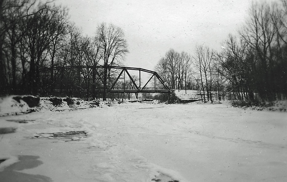 This iron bridge replaced the wooden covered bridge over the Olentangy River at Wilson Bridge Road, which was washed away in 1911. The iron bridge was demolished during the construction of I-270 in the late 1960s.