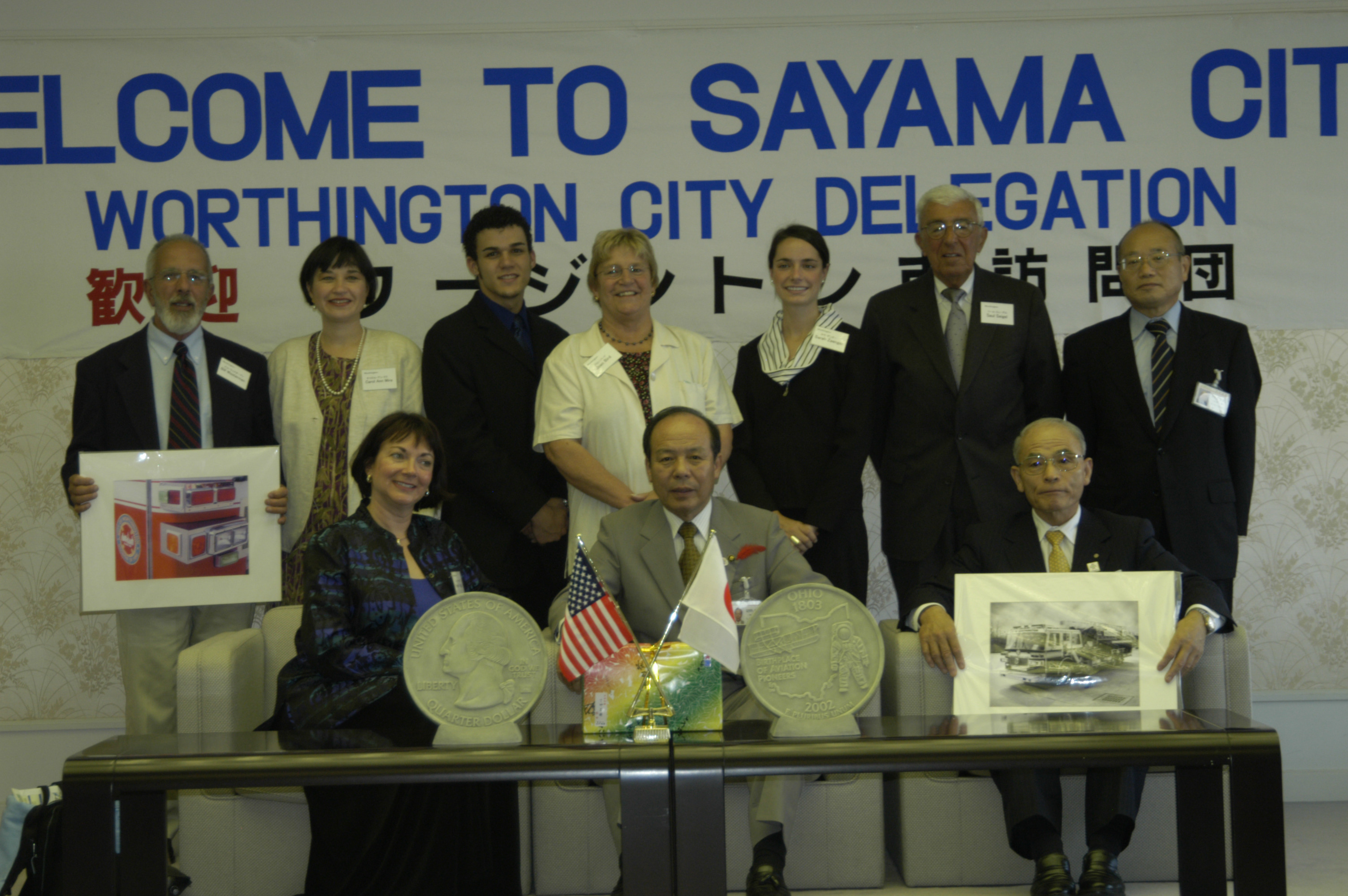 2003 WIFA delegates are pictured with the Mayor of Sayama exchanging gifts with the Sayama International Friendship Association, which included photographs of Worthington fire engines. Members of the Worthignton delegation were Bill Westerman, Carol Ann Mira, Nate White, Joan Bird, Sarah Zaenger, Saul Seigel, and Regina Trigg.