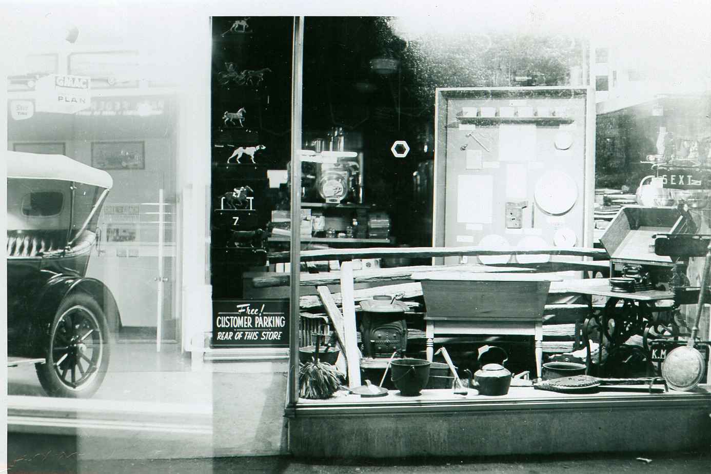 Historic objects were displayed in the window of Worthington Hardware during the City's Sesquicentennial celebration in 1953. Worthington Hardware was located at 661 High Street. The store operated under a variety of owners throughout its history, most recently Zettler Hardware, prior to its closing in 2014.