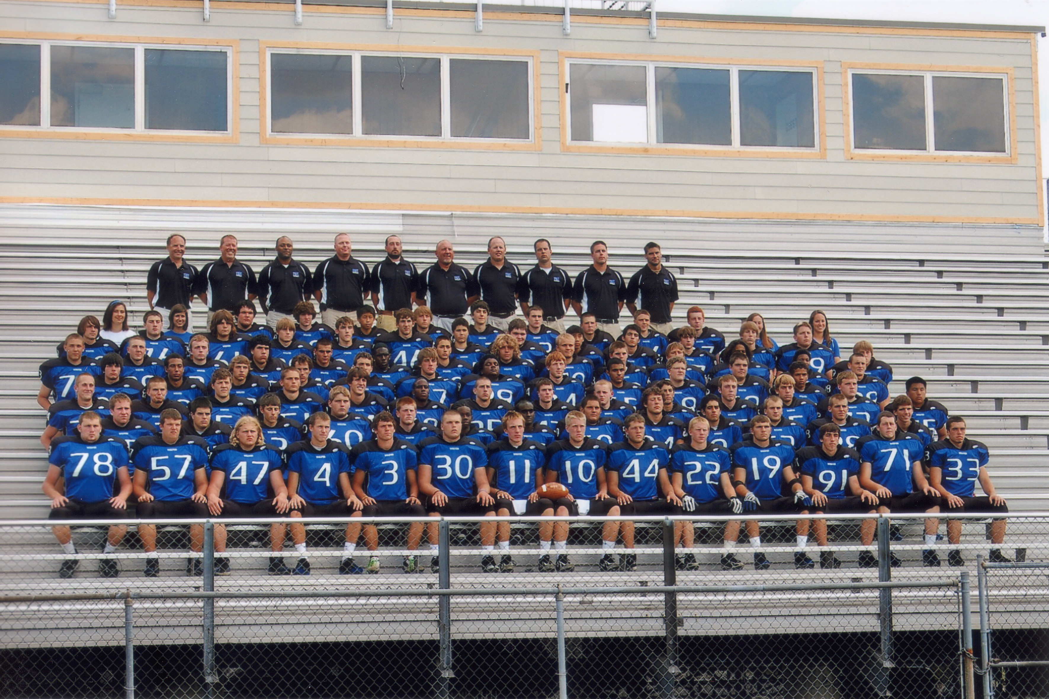 The 2008 Worthington Kilbourne High School football team is pictured here. The Wolves head coach was Vince Trombetti. Team captains were Drew Reiter, Aaron Kingcade, Dan Sprauge, and Luke Bott. They enjoyed a very good season with 9 wins and 3 losses, making it to the second round of playoffs.